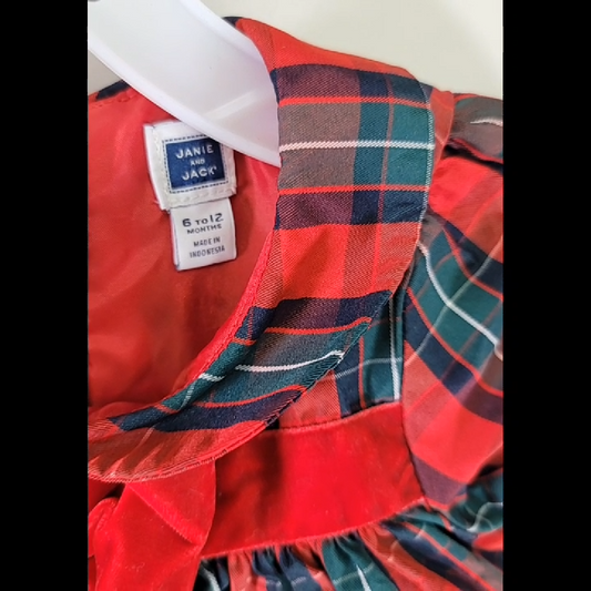 Janie and Jack Red and Green Plaid Dress Set With Velvet Pants Size 6-12 MO