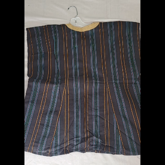 Handmade Traditional African Men's Top - Dark Gray Striped Shirt Size XL