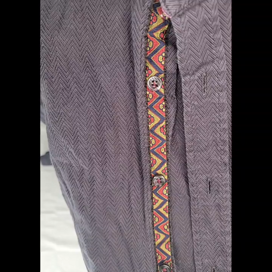 Enzone Men's Dark Gray Long-Sleeve Button-Down Shirt Herringbone Pattern Size L
