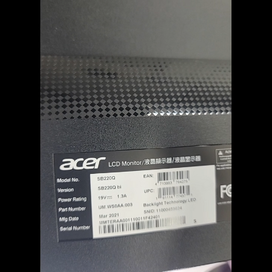 Acer SB220Q 21.5-inch Full HD Monitor With Power Cable & HDMI Cord