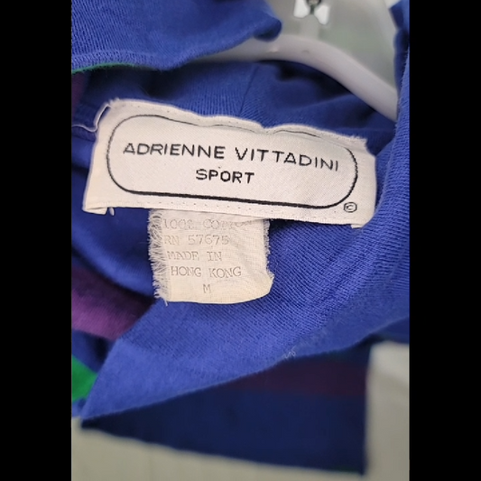 Vintage Adrienne Vittadini Sport Striped Long Sleeve Top w/Pockets Size M