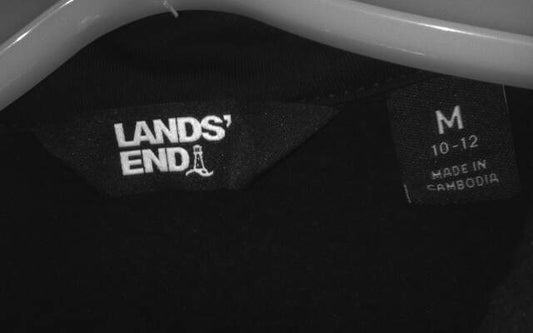 Lands' End Women's Teal and Navy Checkered Fleece Jacket