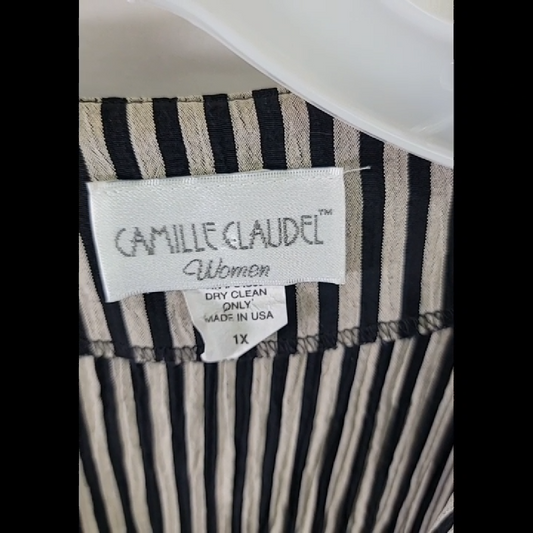 Vintage Camille Claudel Black and White Striped Blouse Size 1X