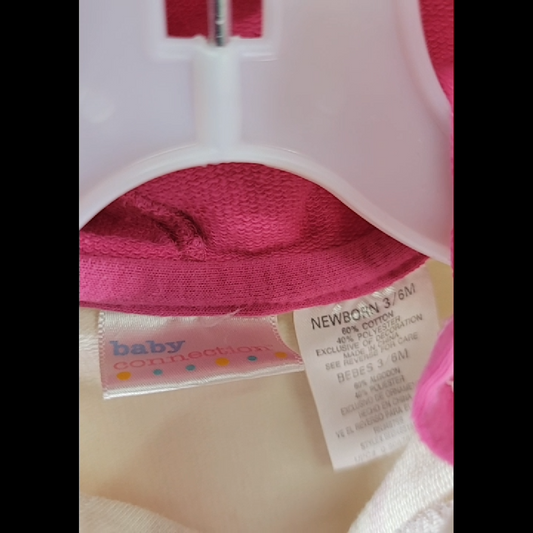Baby Connection Hooded Onesie in Pink and White Size 3-6 MO